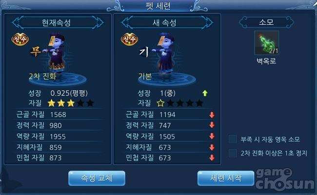펫의 초기 형태는 랜덤으로 정해지지만 세련을 통해 펫의 자질이나 성장치, 형태를 바꿀 수 있는 것은 물론 임의의 펫 스킬을 학습시킬 수도 있어 자신이 원하는 형태로 육성해나가는 것이 가능하다.