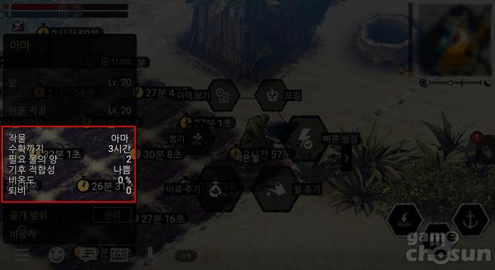 ▲ 작물을 눌러보면 현재 상황을 확인할 수 있다. (출처 - 게임조선 촬영)