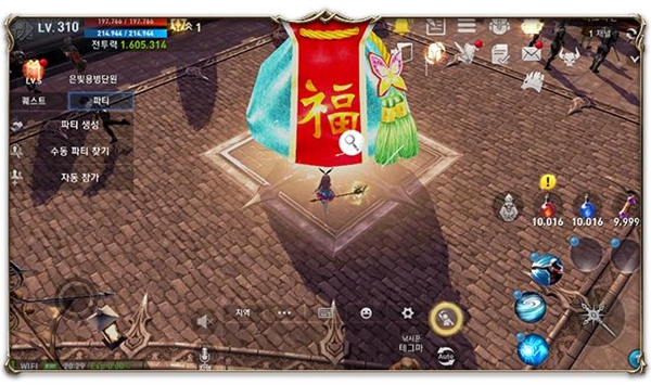 ▲ 마그나딘 곳곳에 등장하는 복주머니 모양의 설날 선물(출처- 리니지2레볼루션 공식 홈페이지)