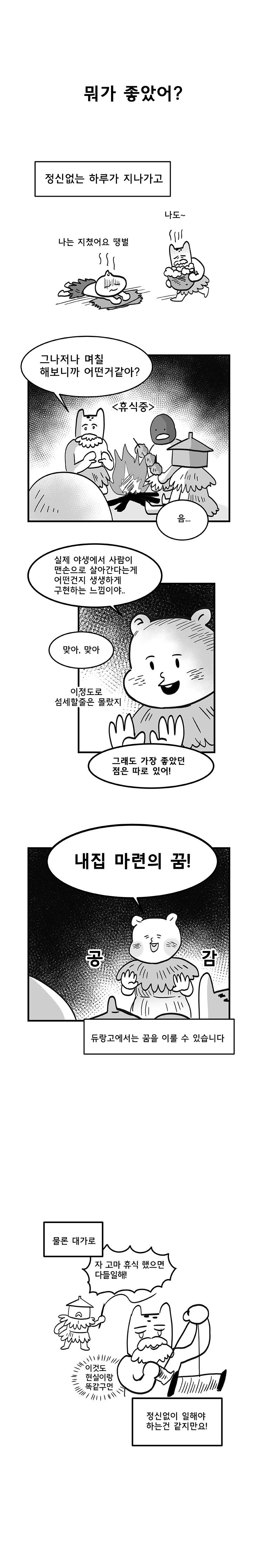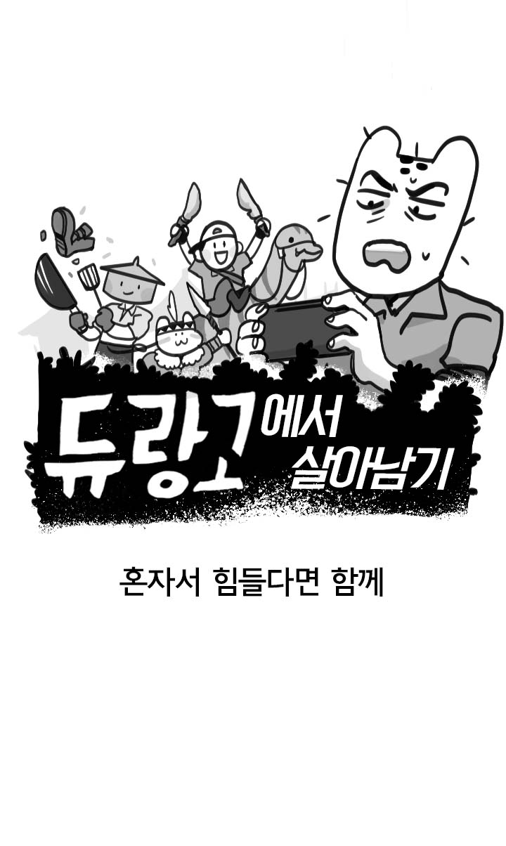 아래는 웹툰 작가 '국도'의 세 번째 작품 '듀랑고에서 살아남기 3화 - 혼자서 힘들다면 함께' 작품이다.