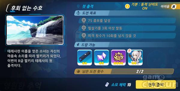 단순히 미션을 클리어하는 것만으로도 테레사와 관련된 발키리 조각을 다수 획득할 수 있으며 3성 클리어를 통해 기밀 상점 주화를 얻어 통해 테레사뿐만 아니라 다른 캐릭터로도 사용할 수 있는 성흔이나 무기를 획득할 수 있는 '영원한 추억'은 어떻게 플레이 해야 할까?