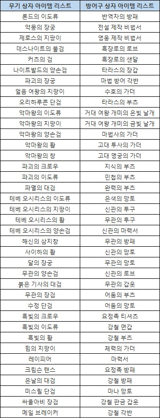 ◆ 나르엔 상자에서 획득 가능한 장비 품목