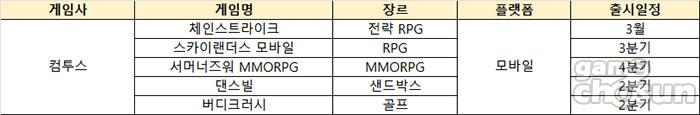 컴투스는 올해 '체인스트라이크' '스카이랜더스 모바일' '댄스빌' '버디크러시'에 '서머너즈워 MMORPG'를 선보인다.
