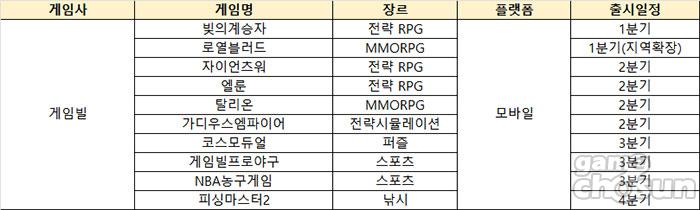 △ 게임빌 2018년 신작 라인업 (출처 - 게임조선 정리)