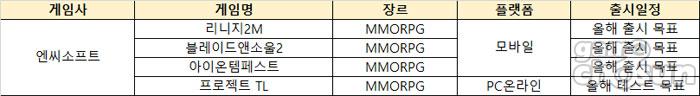 △ 엔씨소프트 2018년 신작 라인업 (출처 - 게임조선 정리)