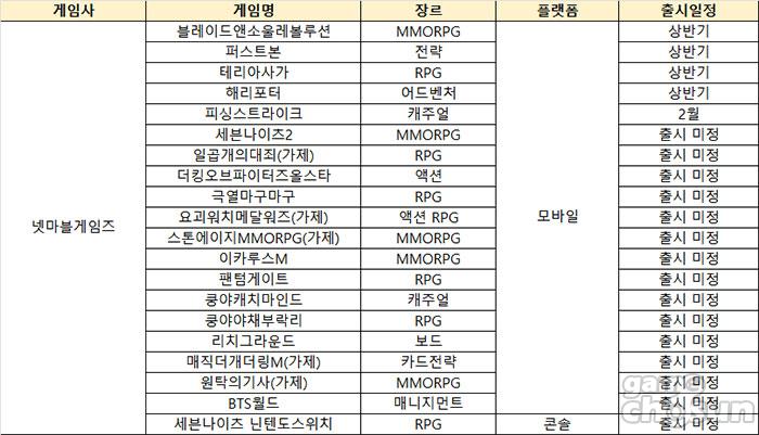 △ 넷마블 2018년 신작 라인업 (출처 - 게임조선 정리)