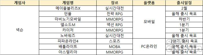 △ 넥슨 2018년 신작 라인업 (출처 - 게임조선 정리)