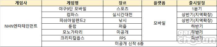 △ NHN엔터 2018년 신작 라인업 (출처 - 게임조선 정리)
