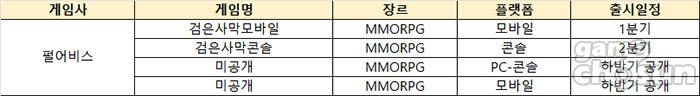 △ 펄어비스 2018년 신작 라인업 (출처 - 게임조선 정리)