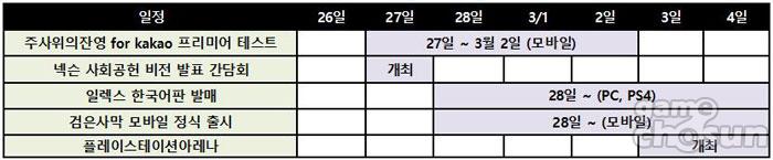 △ 2018년 3월 첫째 주 게임업계 일정 (출처 - 게임조선 정리)
