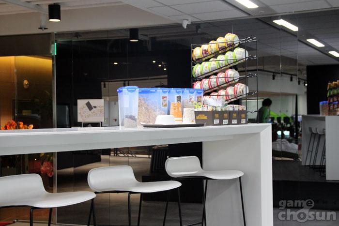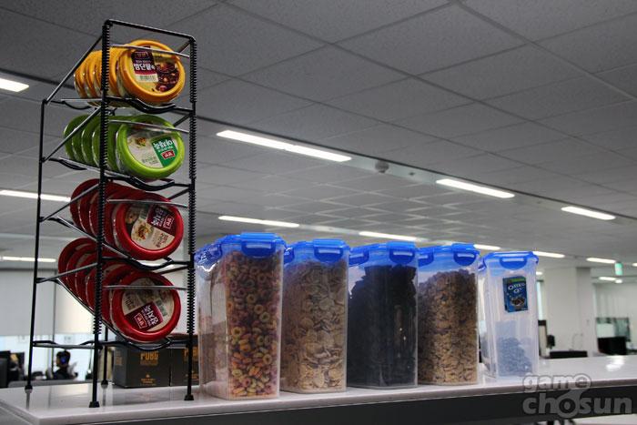 △ 가볍게 식사를 해결하기 위한 직원들을 위해 마련된 간식거리 (출처 : 게임조선 촬영)