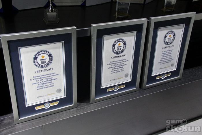 △ 배틀그라운드가 휩쓴 상과 기네스 기록 (출처 : 게임조선 촬영)