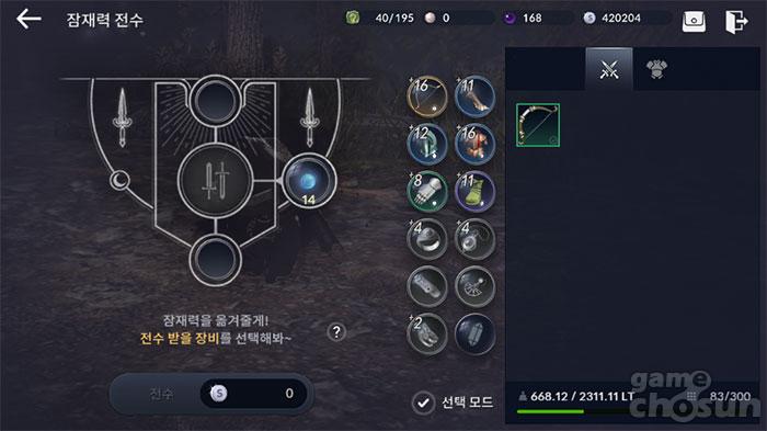 △ 강화된 무기는 꼭 잠재력 전수로 수치 이전을 하자 (출처 - 게임조선 촬영)◆ 강화된 무기는 '잠재력 전수'로