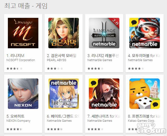 (출처-구글 플레이 스토어 매출 순위 갈무리)