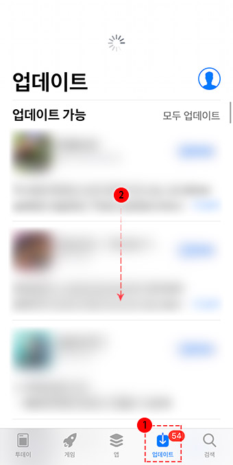 iOS 디바이스 이용자의 경우 앱스토어에서 업데이트-구입 항목으로 이동해 화면을 터치한 뒤 아래 방향으로 슬라이드 해 업데이트되는 앱에서 버튼을 눌러서 업데이트를 진행하면 된다.