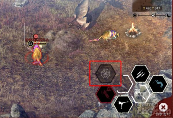 ▲ 동물 사로잡기 스킬을 익히면 거미줄 모양의 스킬이 뜬다 (출처 - 게임 스크린샷)