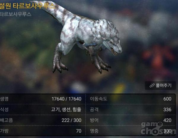 마지막으로 전투에 좀더 활용도를 높이고 싶다면 열대 해역 '데이노니쿠스'도 좋다. 준수한 이동속도, 특히 자신을 공격하게 만드는 높은 어그로 능력은 다른 동물에 비해 높은 편이라 궁수들이 많이 애용하는 동물 중 하나다.