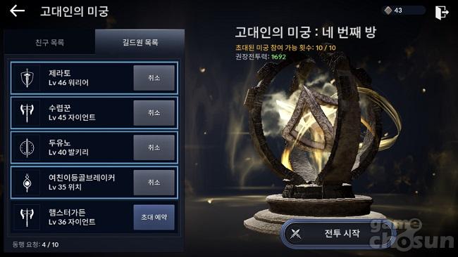만약 친구 또는 동일 길드원의 초대를 받아 고대인의 미궁에 입장 시에는 '고대의 석판'을 필요로 하지 않기에 부담이 적다. 단, 하루에 최대 10번만 참여할 수 있으며 개척을 시작하는 유저보다 다소 적은 보상을 입수하게 된다.