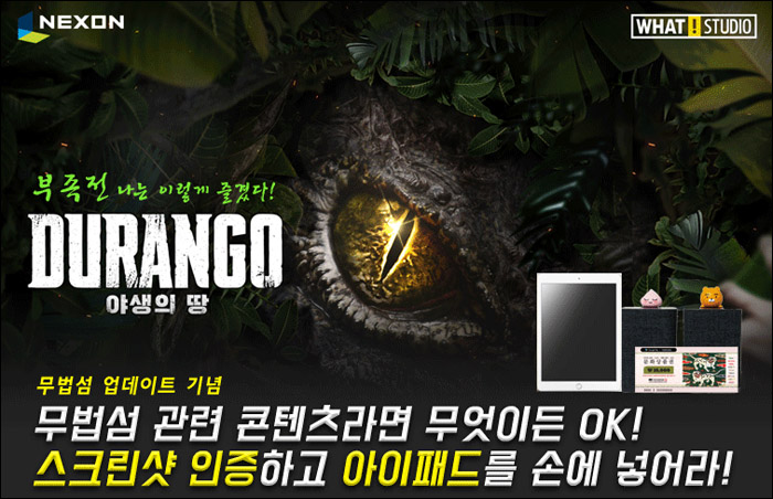 이벤트는 3월 22일까지 진행되니 아이패드에서 '야생의땅:듀랑고'를 즐기는 행운을 꼭 누리시기 바랍니다.