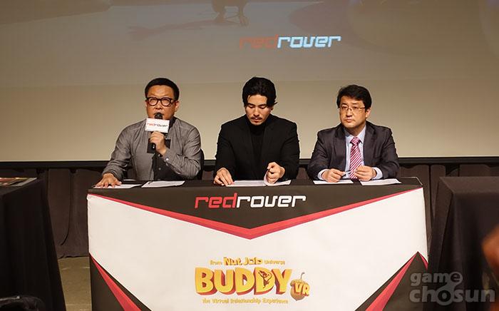 ▲ 왼쪽부터 레드로버의 오성 VR/AR 사업 팀장, 하상우 전무, 채수응 감독 (출처 - 게임조선)