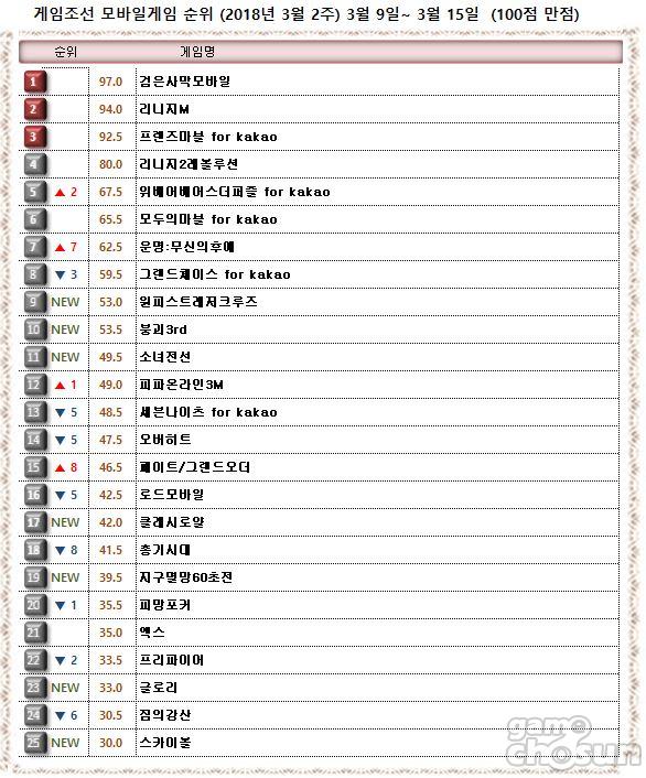▲ 2018년 3월 21주 <게임조선> 모바일게임순위