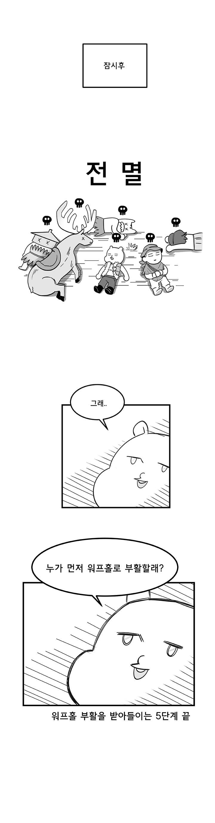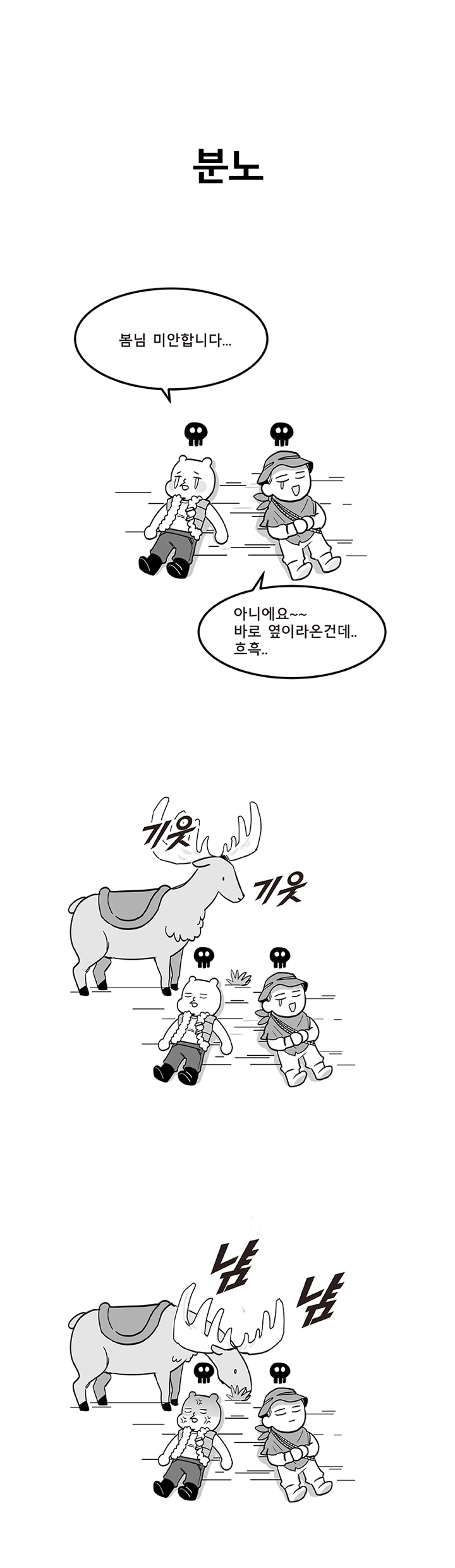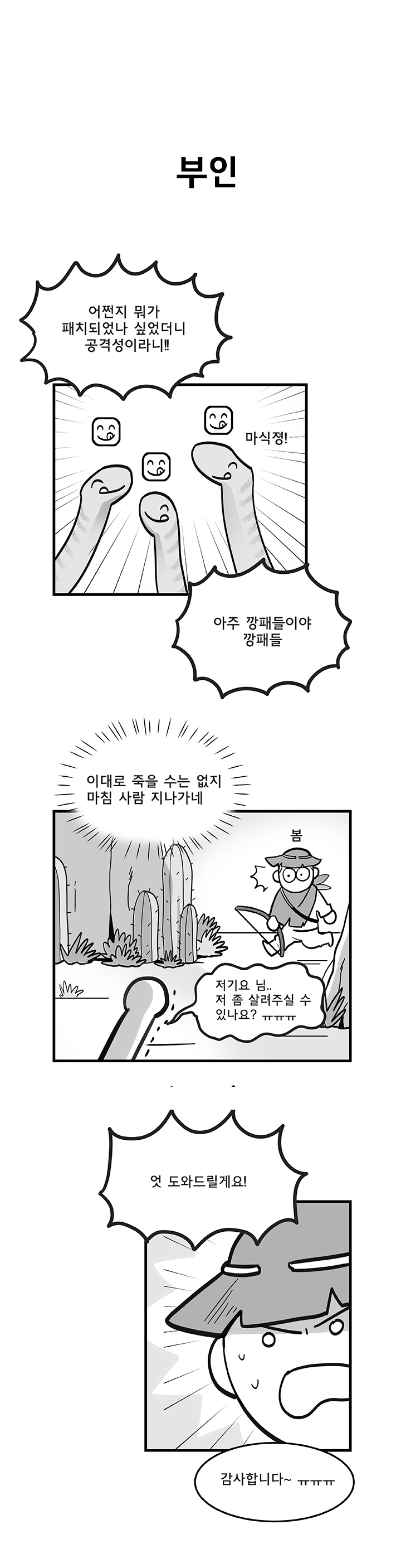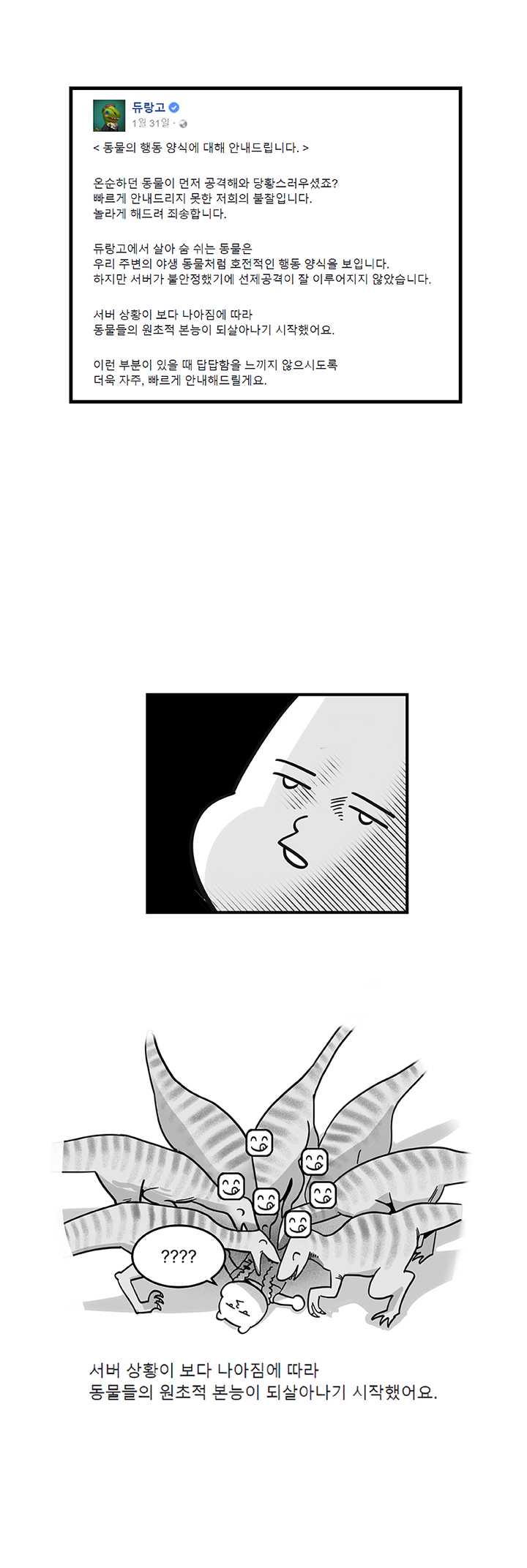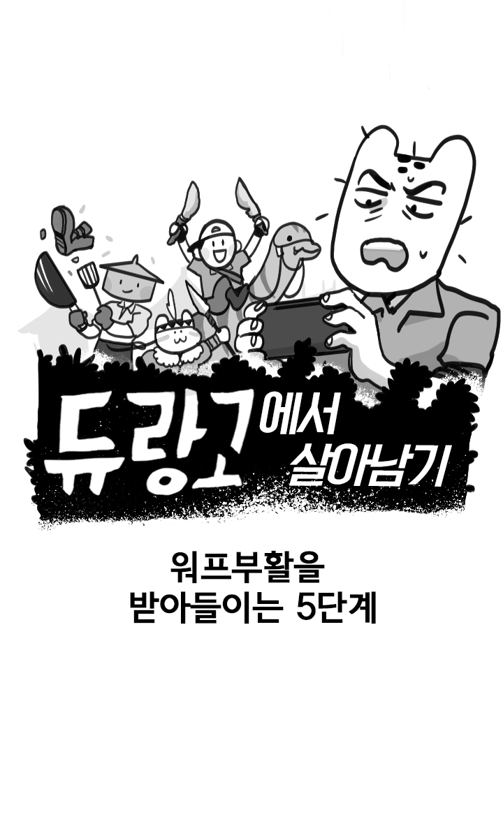 아래는 웹툰 작가 '국도'의 '듀랑고에서 살아남기 4화 - 부활을 받아들이는 5단계' 작품이다.