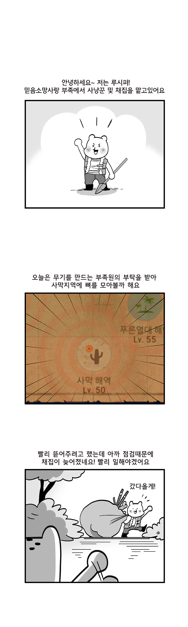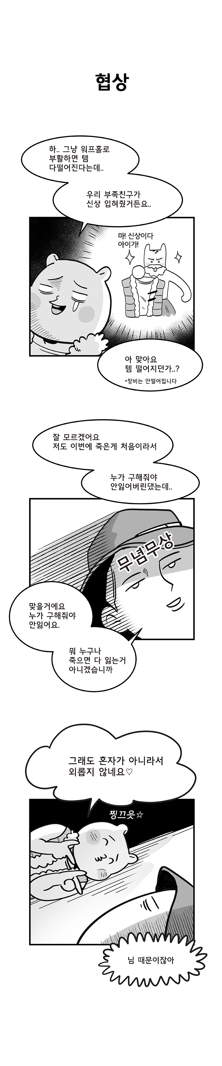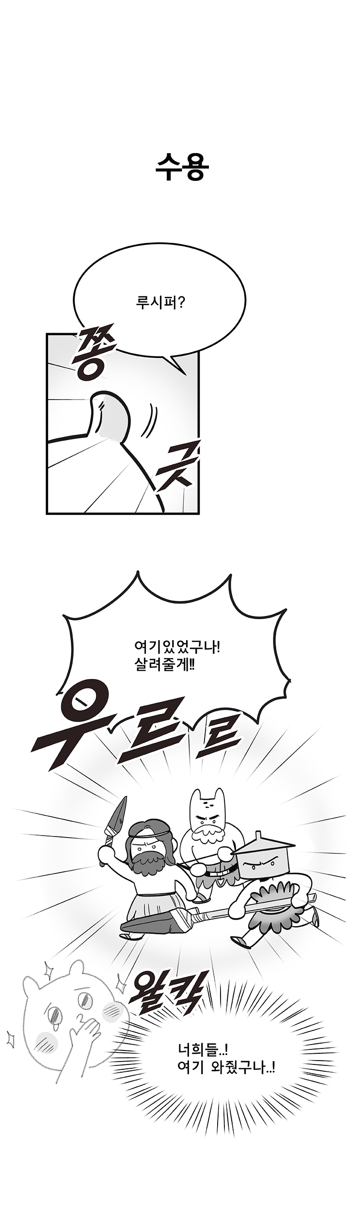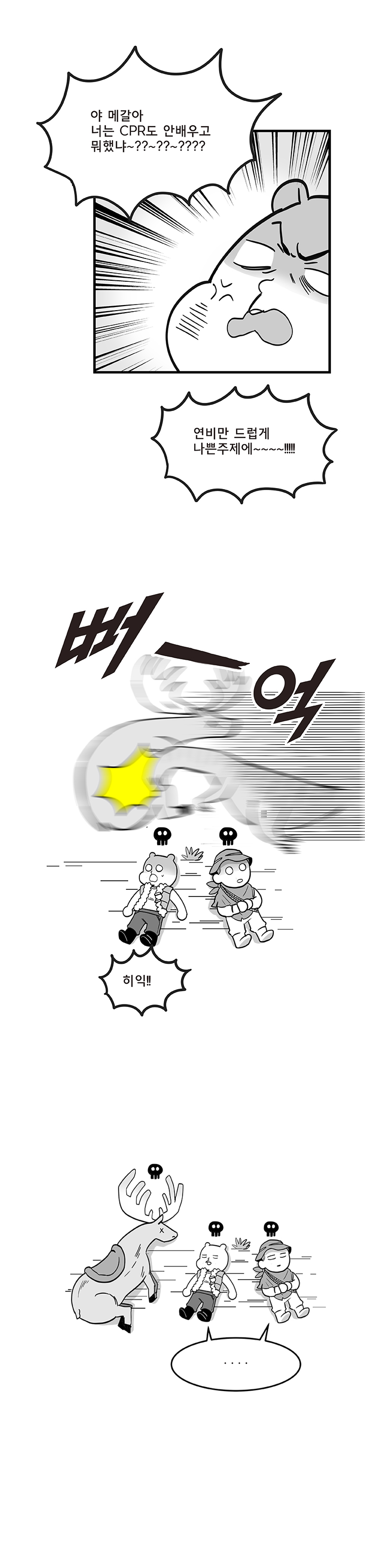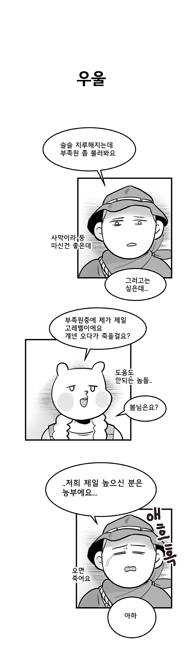 아래는 웹툰 작가 '국도'의 '듀랑고에서 살아남기 4화 - 부활을 받아들이는 5단계' 작품이다.