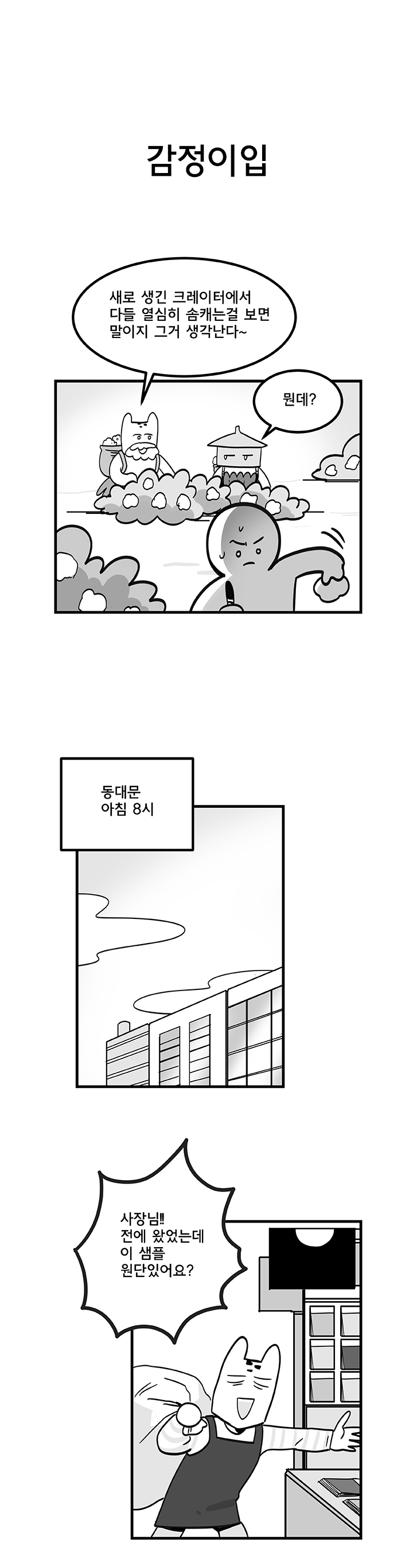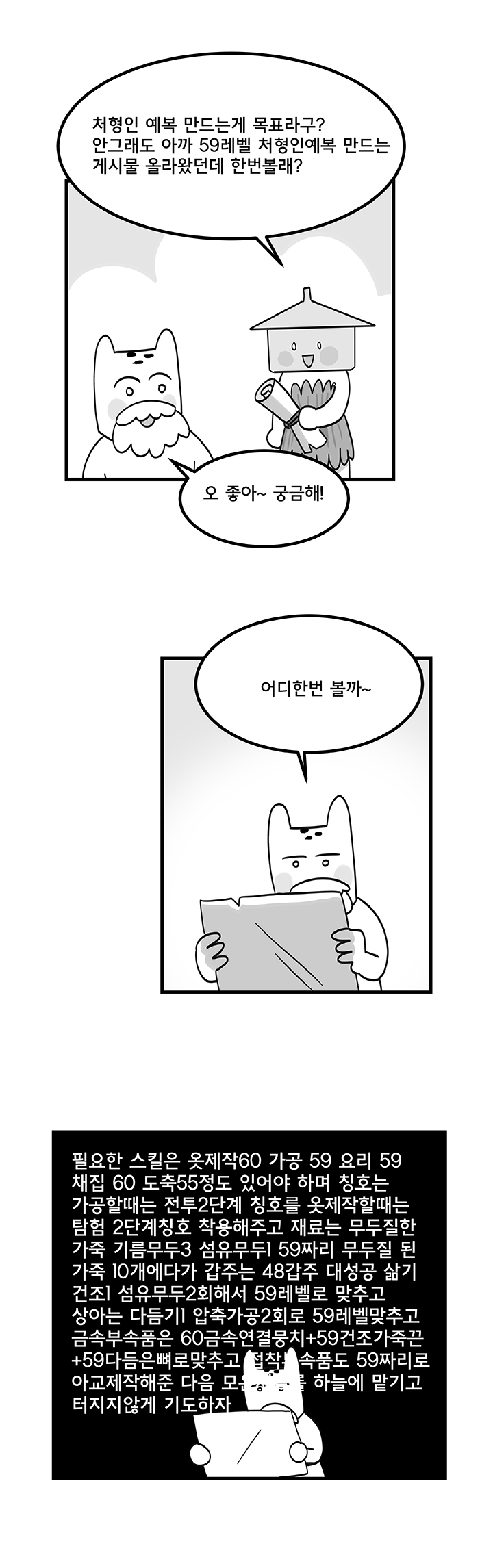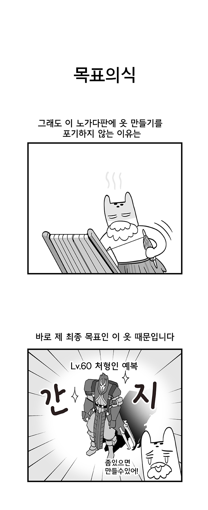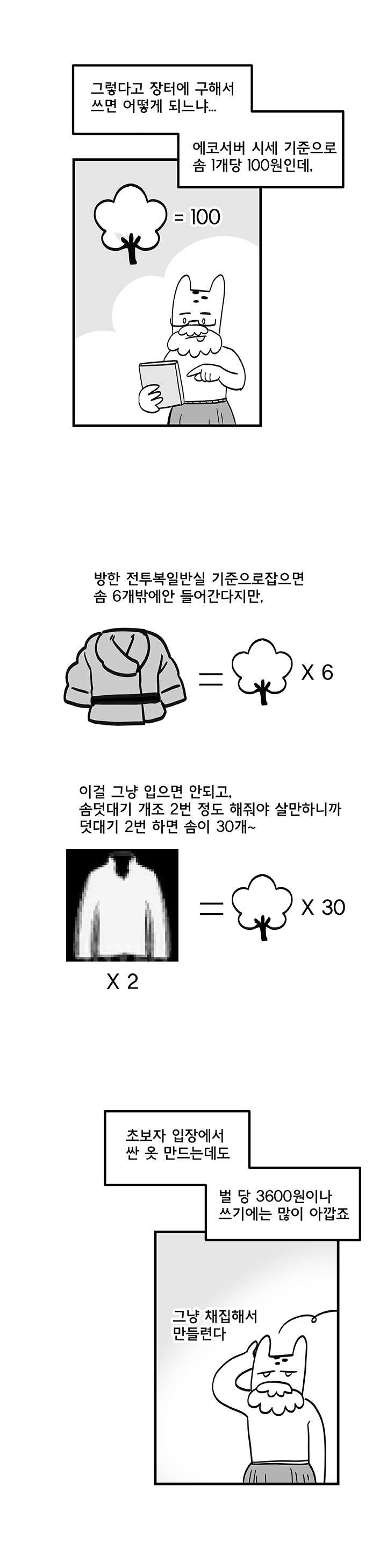 아래는 웹툰 작가 '국도'의 '듀랑고에서 살아남기 5화 - 의류직의 고충' 작품이다.
