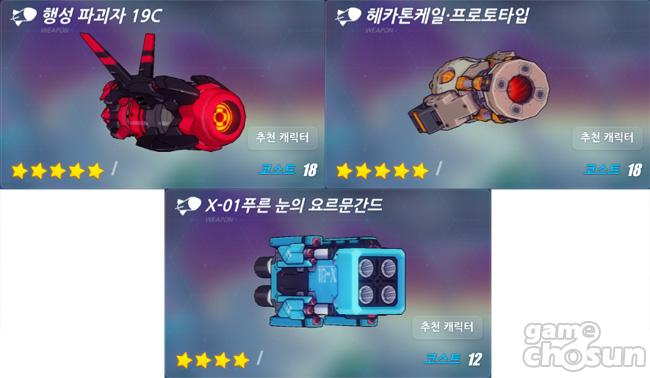 쿠로냐는 기본 공격 특성상 유도탄 계열의 무기가 강제되는데 그 중에서 추천할만한 무기는 3가지이다.