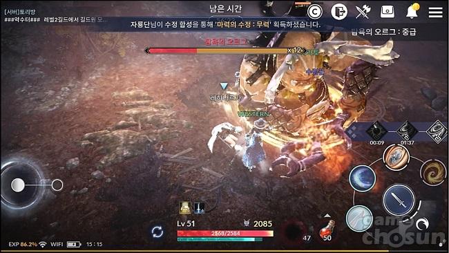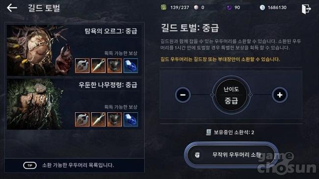 하급 난이도 클리어 후, 즉시 난이도를 올려 중급에 도전했다. 이번에 만난 우두머리는 탐욕의 오르그. 하급에 비해 훨씬 어려웠다. 전투력 2120의 자이언트 클래스가 회복제를 연신 사용하면서 약 3분을 버텼다. 다행히 길드 토벌의 제한 시간은 60분이었기에 캐릭터 사망과 부활을 반복하면서 6명이서 클리어에 성공했다.