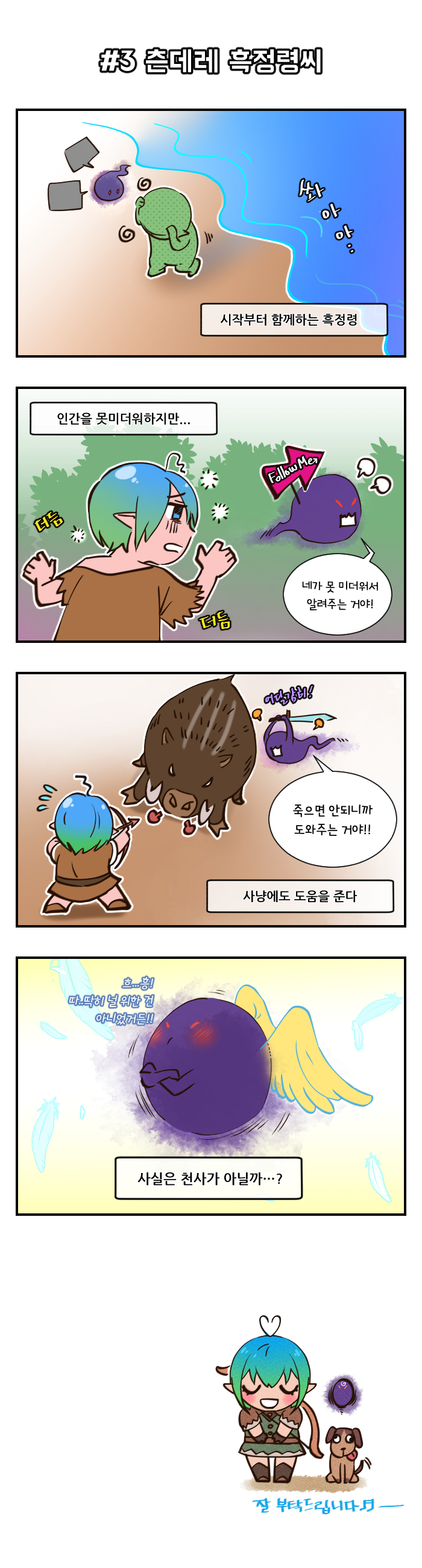 아래는 웹툰 작가 '유도'의 '흑정령과 노예 계약하는 만화' 작품이다.