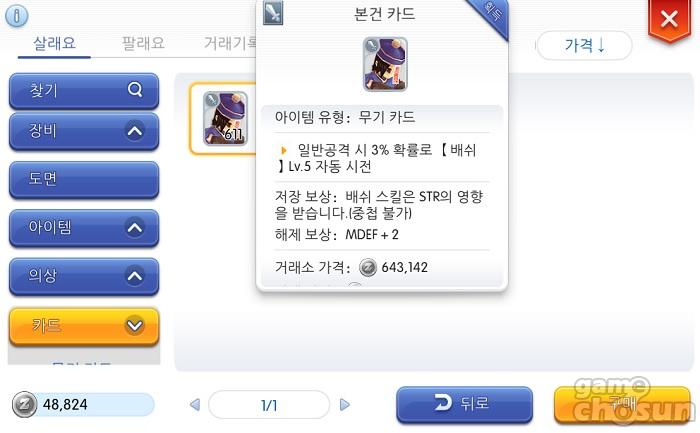 본건 카드의 현재 거래소 시세는 70만 제니 정도. 낮은 가격은 아니지만 그렇다고 아예 모으지 못할 정도의 양은 아니므로 첫 목표 카드로 노려볼 만하다는 것.