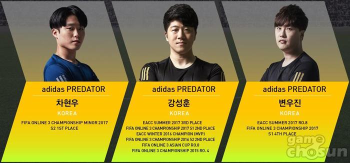 ‘Team Adidas PREDATOR’ 소속 선수들은 이달 30일 ‘EA챔피언스컵 스프링 2018’ 개최를 앞두고 열린 두 차례의 추가 대표선발전을 통해 뽑혔다. 강성훈은 김정민과 ‘사제’ 관계로 알려져있다. 전략이나 경기 스타일 면에서 두 선수 간 유사한 점이 많다. 강성훈은 이를 자신만의 스타일로 변형 및 소화하며 ‘챔피언십 2016 시즌2’에서 준우승을 차지했다.