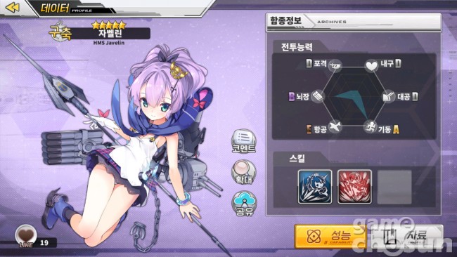 ▲ 구축함 자벨린 (출처 - 게임조선 촬영)