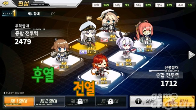 ▲ 전열과 후열에는 배치할 수 있는 함종이 정해져 있다. (출처 - 게임조선 촬영)