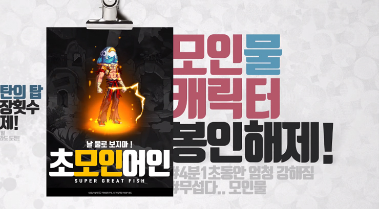 비탄의 탑 이미지에는 비탄의 탑과 히말라야를 합친 '비말라야'라는 이미지가 표기돼 있고 모인물 캐릭터는 4분 1초동안 엄청 강해진다고 설명돼 있다.