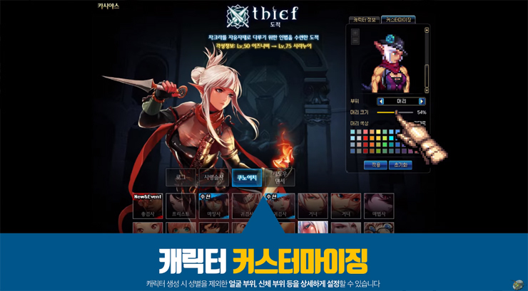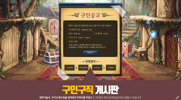 캐릭터 커스터 마이징으로는 머리 크기를 키우거나 줄일 수 있고 플레이 패턴과 노하우를 빅데이터로 분석해 진행되는 자동사냥 시스템에는 캐릭터가 계속 사망상태다. 구인구직 게시판에는 공격대나 파티, 길드 등에 취직하기 위해 경력기술서와 자기소개서를 입력하라고 돼 있다.