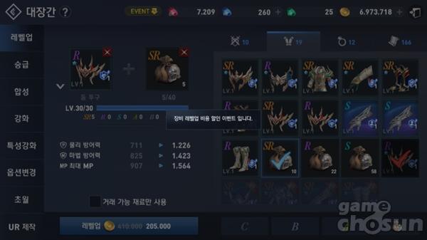단 모든 장비의 할인 이벤트가 동시에 진행되는 것이 아니고 캐릭터 장비, 펫 장비, 집혼석 장비 할인이 일주일 간격으로 순차 진행되는 만큼 할인 기간을 정확하게 확인하고 레벨 업을 진행하는 편이 좋다.