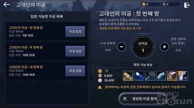 기존 '고대인의 미궁' 콘텐츠는 이용자가 방을 개설하고, 동일 길드 내 길드원 또는 친구로 등록된 이용자를 초대하는 방식이었다. 하지만 이번 업데이트에서는 고대인의 미궁 공개방을 추가함에 따라, 친구 추가를 위해 채팅창에 외치지 않아도 된다. 공개방은 고대인의 미궁 개척 시에 설정을 하면 되며, 고대인의 미궁 공개방에 참여하기를 희망하는 이용자는 난이도 생성 후, '생성된 미궁 참여' 버튼을 누르면 된다. 이 때 무작위로 입장하게 되며 무분별한 참여를 막기 위해 미궁 입장 권장 전투력보다 높아야 입장할 수 있도록 했다.