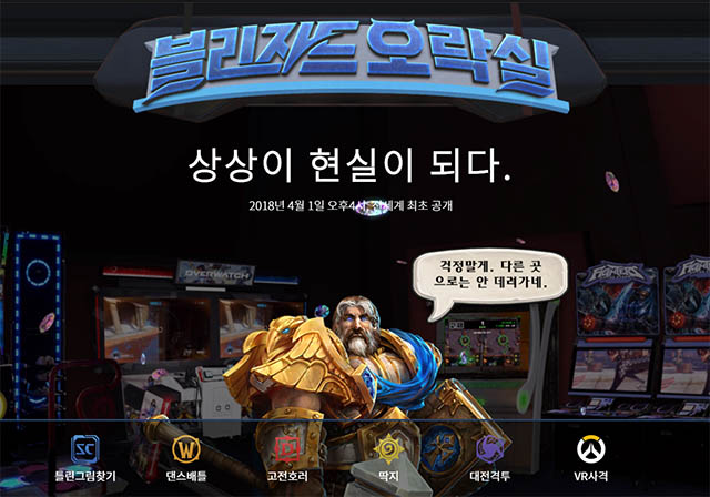스타크래프트는 틀린그림찾기로 재탄생됐고 워크래프트는 댄스배틀, 디아블로는 고전호러, 하스스톤은 딱지, 히어로즈오브더스톰은 대전격투, 오버워치는 VR사격게임으로 변신했다.