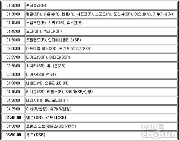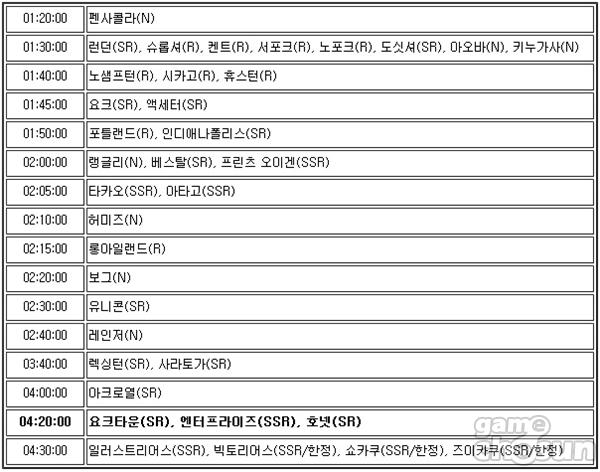 특형함 건조 시 주목할만한 시간대는 '4시간 20분'인데 항공모함계 0티어로 취급받는 엔터프라이즈가 존재하기 때문이다. 엔터프라이즈는 게임 내 최강의 딜러라고 할 수 있다. 때문에 후드와 더불어 유저들이 가장 뽑고 싶은 캐릭 1순위이다. 호넷과 요크타운 모두 SR등급이기 때문에 초반 해역에서 유용하게 쓸 수 있다.