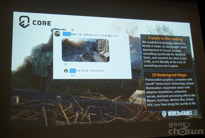 알렉산더 드 조르지오 월드오브탱크 아태지역 퍼블리싱 디렉터는 “1.0 업데이트는 ‘월드오브탱크’ 8년의 역사동안 가장 큰 업데이트라고 말할 수 있다. 3년 동안 250명의 인원이 자체 개발 엔진인 코어 엔진을 개발했다. 이번 업데이트는 아름다운 그래픽, 이용자들의 몰입도, 모든 이용자가 플레이하는 것이 목표이다.”라고 1.0 업데이트에 대해 설명했다.