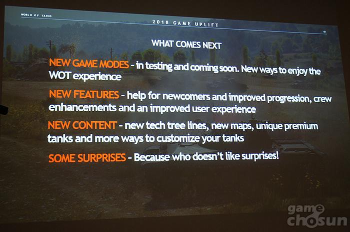탱크 아카데미를 통해 향후 ‘월드오브탱크’의 방향성도 소개됐다. 먼저 만우절에서 업데이트에서 배틀로얄 방식의 모드를 추가했듯이 새로움 모드를 제작할 예정이다. 또 새로운 테크 트리, 맵, 프리미엄 전차 및 기존 전차의 커스터마이징 기능이 업데이트될 계획이다. 이 밖에도 이용자들을 위한 깜짝 발표도 준비 중이다.