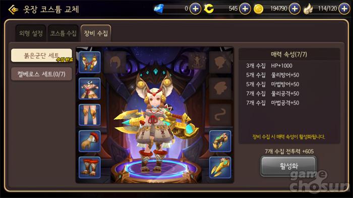 이런 장비 수집 후에는 옷장 코스튬 교체 메뉴로 들어가 ‘매력 속성’을 활성화 하면 추가적인 능력치를 획득할 수 있다. 장비를 수집할 때마다 추가되는 능력치가 다르기 때문에 게임 플레이 초반 전투력 확보에 도움이 된다.