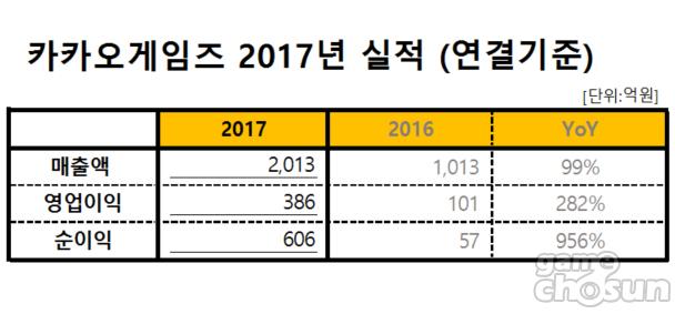 카카오게임즈(각자 대표 남궁훈, 조계현)는 6일 2017년 연간 실적을 공개했다.