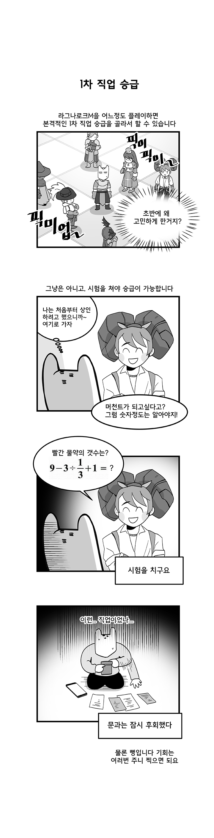 웹툰 작가 '국도'는 '라그나로크M'을 즐기면서 겪은 에피소드를 웹툰으로 그려 자신의 SNS에 연재 중에 있다. 지난 첫 작품에서는 라그나로크M의 입문을 도와주는 튜토리얼부터 특정 타겟 자동 사냥 시스템에 대한 느낌 등을 담았다. 이번에 공개된 두 번째 작품에서는 '머천트(상인)'으로의 전직부터 라그나로크M만이 가진 독특한 콘텐츠를 소개한다.