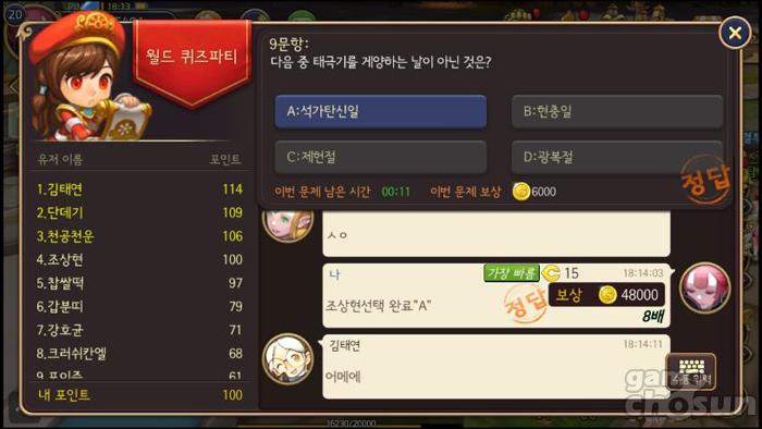 퀴즈는 짧은 시간 진행되기 때문에 시간을 사전에 숙지하고 접속해야 할 필요가 있으며, 게임과 연관 없는 상식 분야기 때문에 부담없이 즐길 수 있다.
