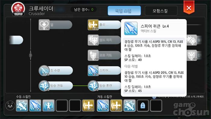 ▲ 기본 공격속도와 크리티컬, 회피력을 상승시켜주는 스피어 퀴큰 = 게임조선 촬영