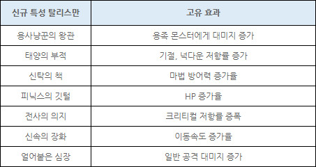 일부 캐릭터는 접속 시 '에러코드 125' 접속 오류가 수정되면서 쾌적한 플레이가 가능해질 예정이며 신규 특성 탈리스만이 추가되어 더욱 다채로운 캐릭터 세팅이 가능해질 전망이다.