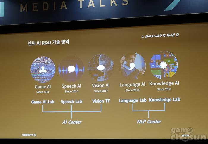 엔씨의 AI센터는 2011년 TF로 시작해 이듬해 12월 AI랩으로, 2016년 1월 현재의 AI센터로 승격됐다. 딥러닝과 시뮬레이션 기술 등을 기반으로 게임 플레잉 AI와 게임 기획을 위한 AI, 게임 아트 개발을 위한 AI 등 게임 서비스에 필요한 AI 기술을 연구 중이다.